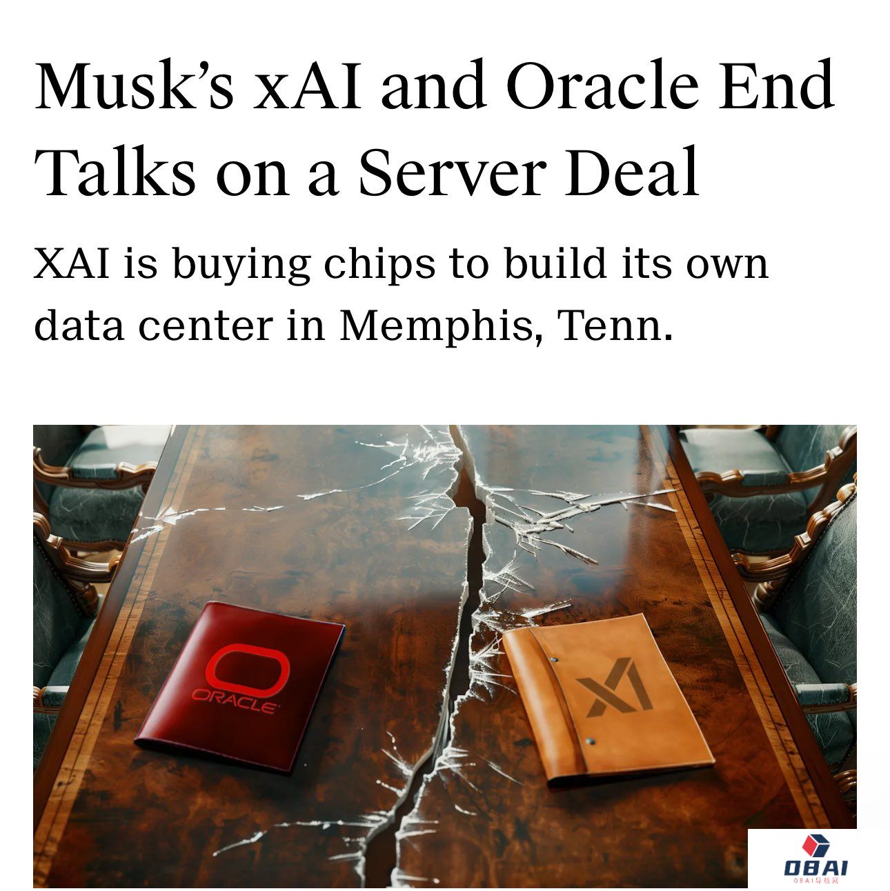 两家公司曾经在2023年11月宣布达成一项合作协议,旨在将xAI的大型语言模型Grok整合到甲骨文的云平台上。这项合作将使甲骨文的客户能够使用Grok的强大功能。7月10日,xAI方面表示,终止双方合作的原因是甲骨文的AI服务器供货速度太慢,无法满足xAI的需求。