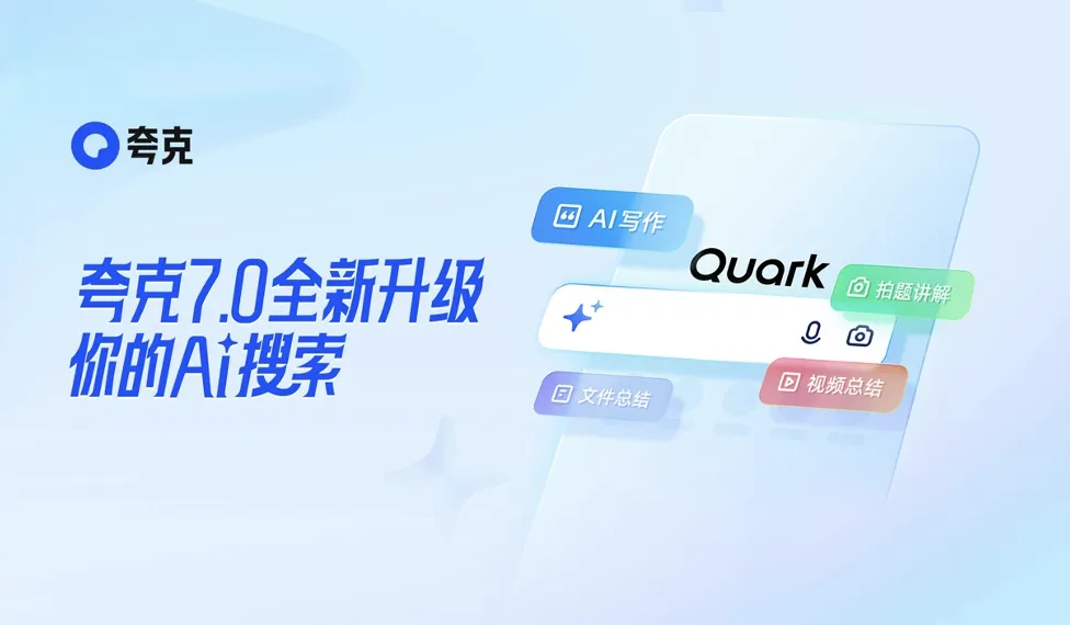 用户在打开夸克 7.0 版搜索框后,输入问题即可体验智能回答,还有 AI 写作、文件总结、视频总结、拍题讲解功能。一个「超级搜索框」集纳了智能回答、智能创作和智能总结三大能力。