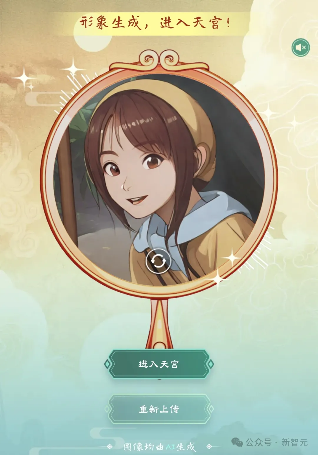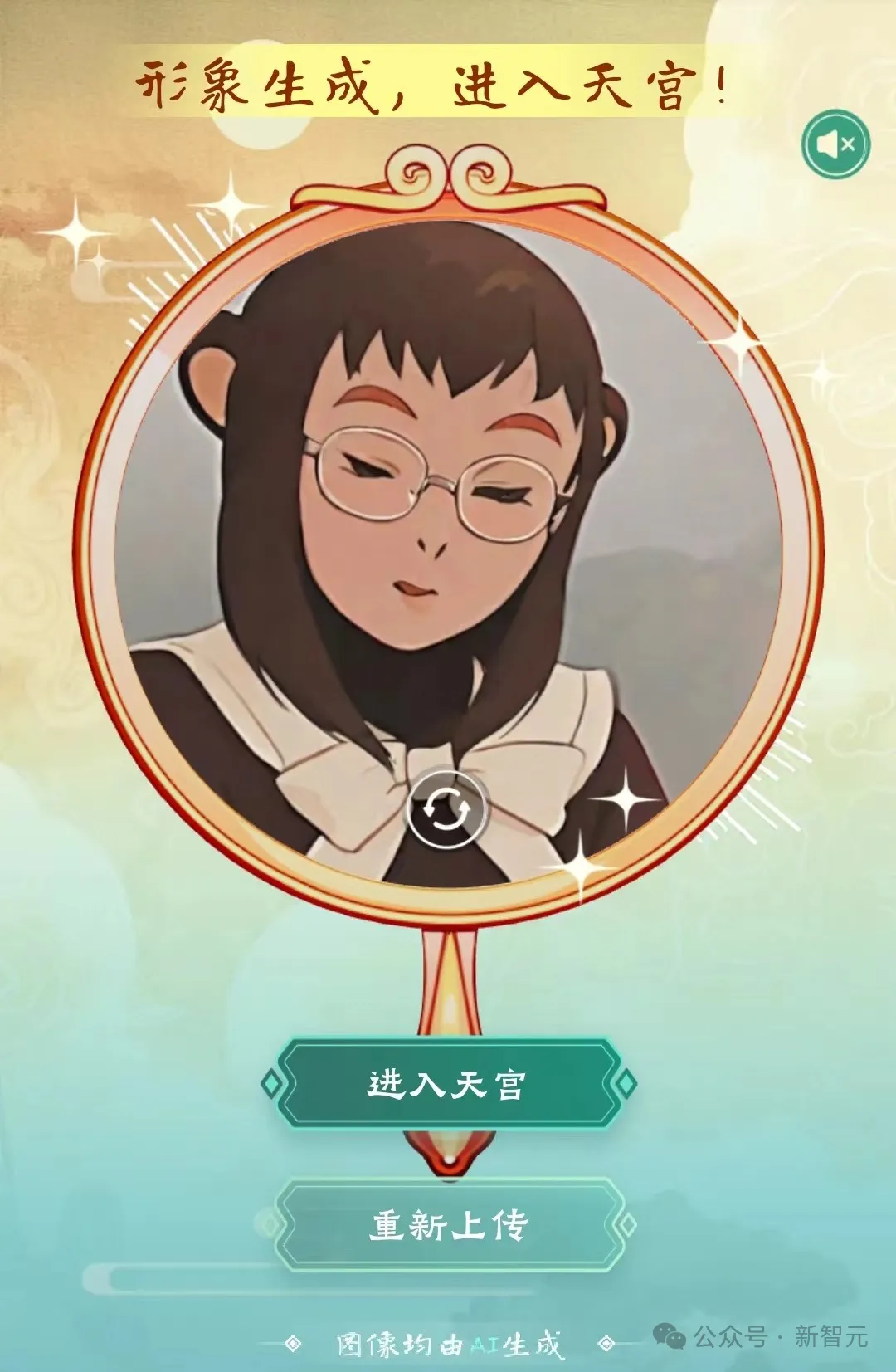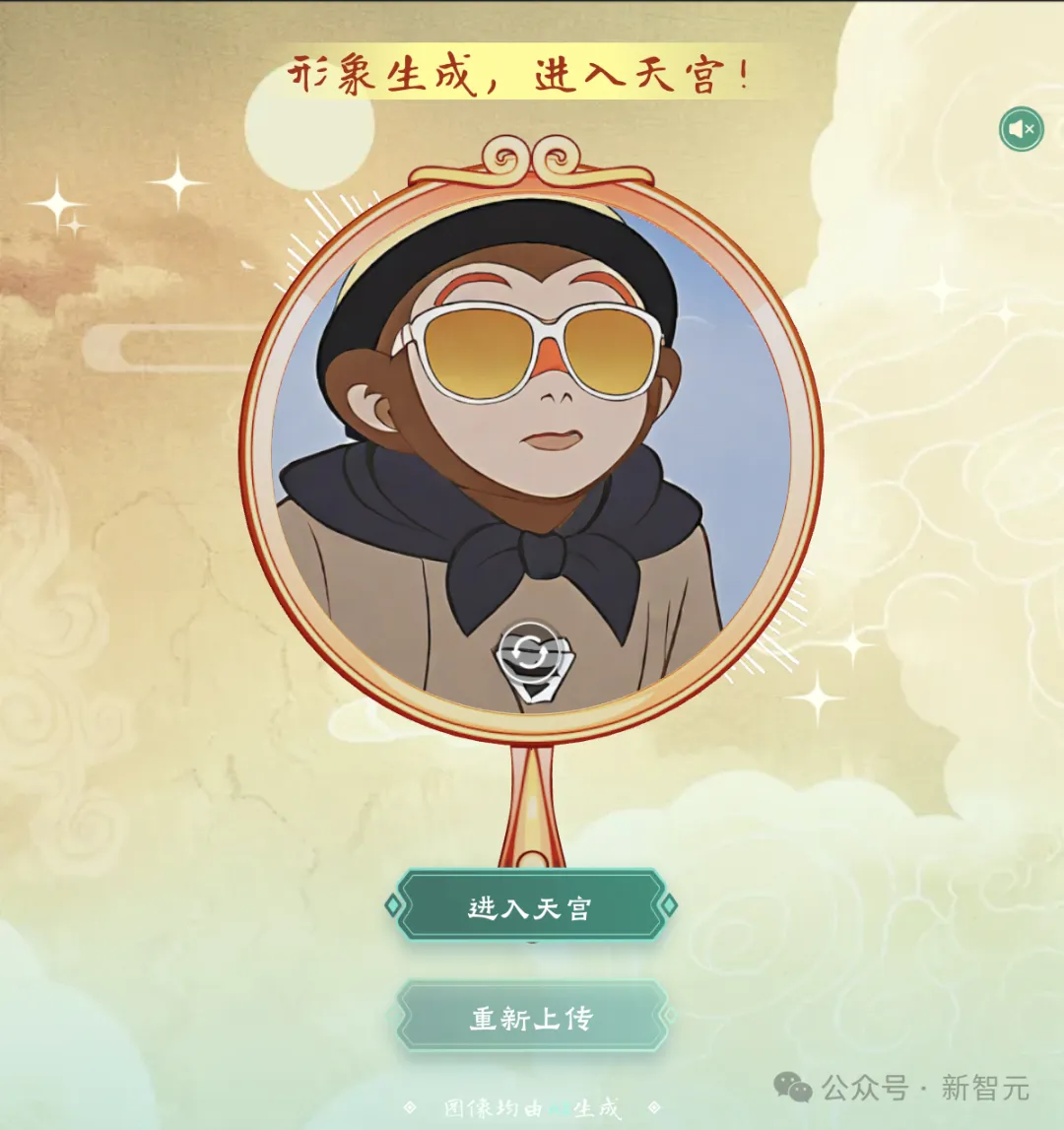 当然,AI会为你全新打造一个进入天宫的形象。聪明的读者已经看出来了,角色画风就是来自《大闹天宫》……里的猴儿。