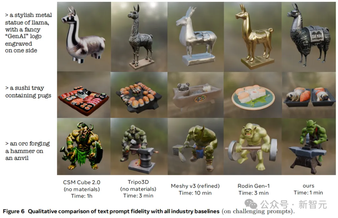 从生产结果上直观来看,3D Gen能够应对不同范畴、不同类别物体的生成任务,而且指令跟随的忠实度甚至好过很多文生图模型。