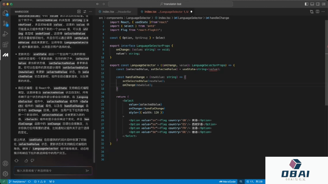 相比于传统的开发方式,豆包MarsCode 编程助手可以帮助开发者更轻松、更专注地编程。下方是一个翻译机器人构建的案例,在 AI 的辅助下,我们可以通过唤起编程助手进行 Chat 提问,完成需求分析、代码熟悉、代码编写和调试。代码补全不仅仅可以帮助开发者更快地输入代码,更是可以通过不断提供代码建议,给我们带来灵感和启发。