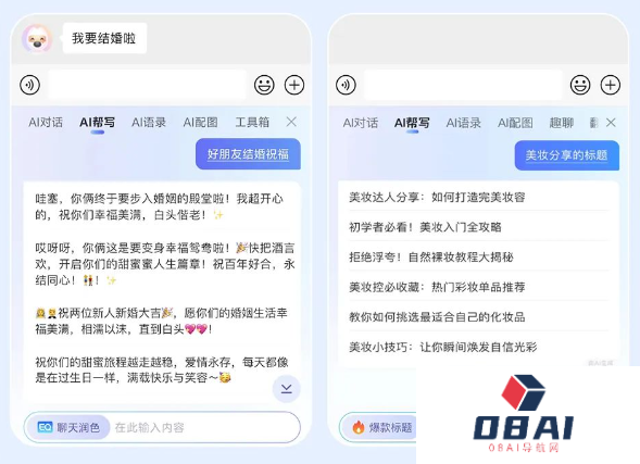AI 帮写可实现“1 秒写标题 10 秒出全文”,提供 21 个帮写指令,包括聊天润色、全能帮写、购物神评、演讲稿生成、短视频动态、诗为你写诗、书影音评、写邮件、高赞朋友圈、个性签名、种草笔记、工作汇报、创意博文、知识分享、简历润色、自我介绍、考试祝福、爆款标题、神评论、求职话术、招聘文案。