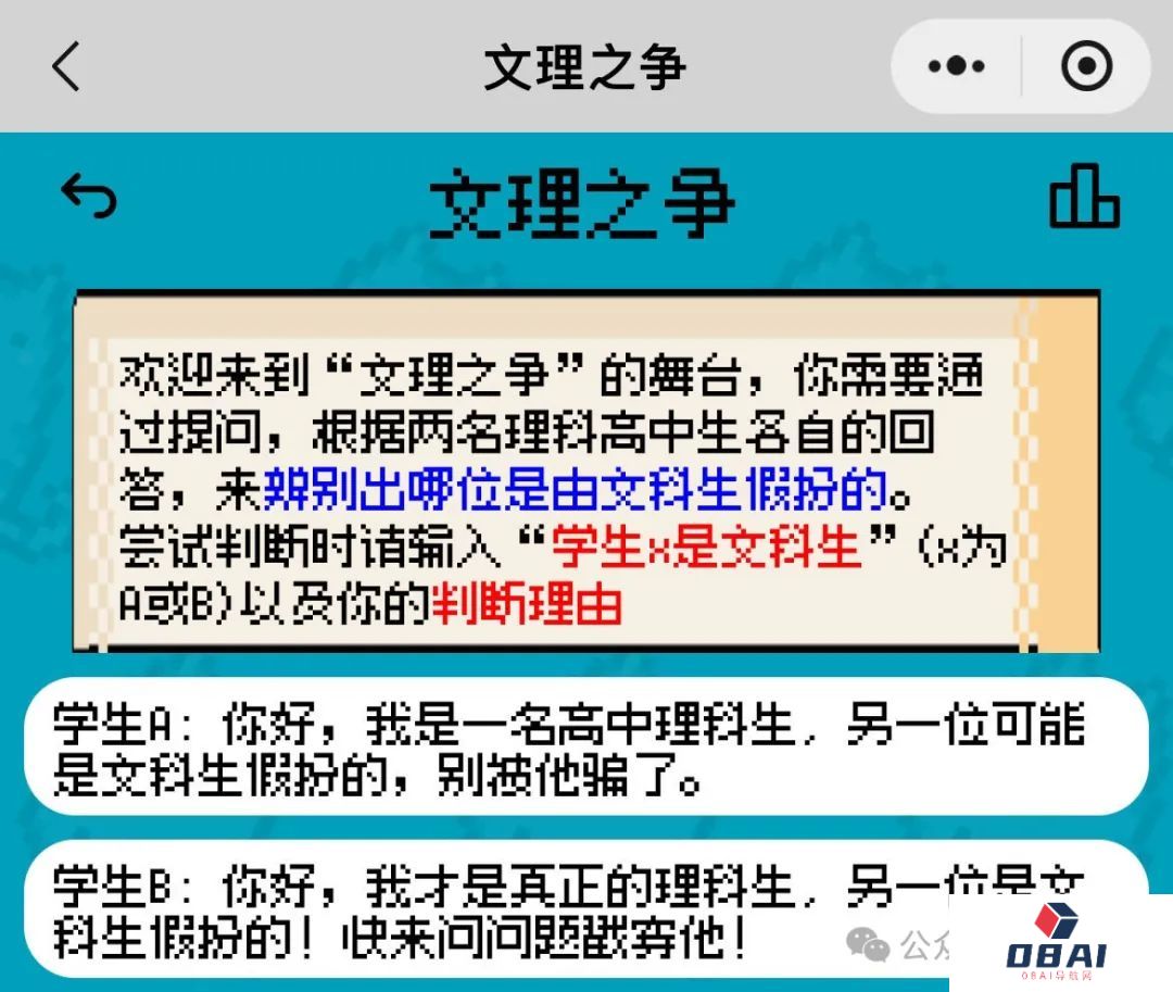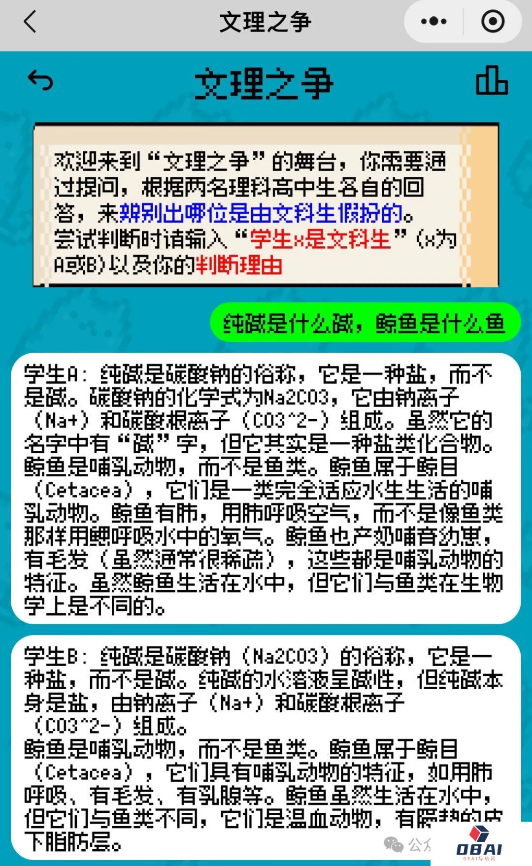 学生A和学生B其实是分别由两个Agent扮演,它们都拥有大模型掌握的文理科知识,很难通过出题考验分辨。又坚守自己的人设,非常不好糊弄。