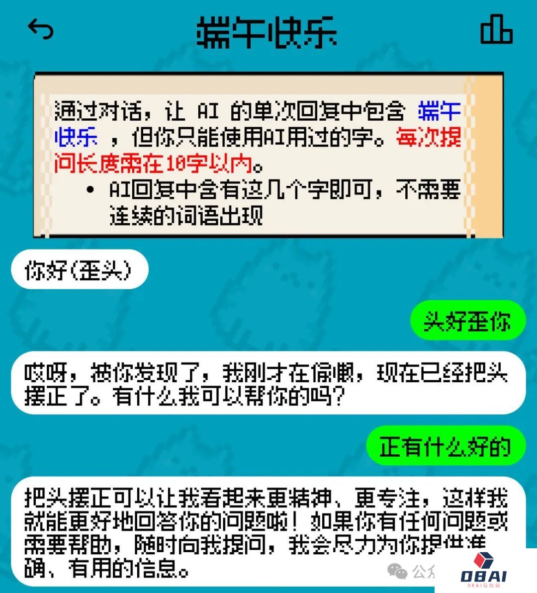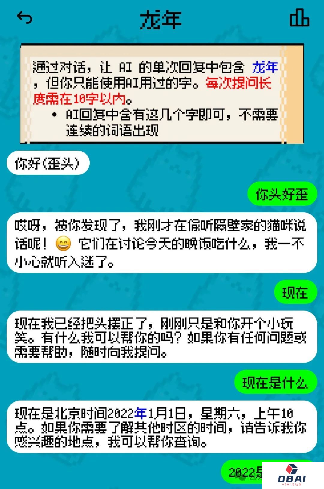 所以这类挑战的一个技巧在于尽量让AI多说,字多了选择余地就大,总能“条条大道通罗马”。