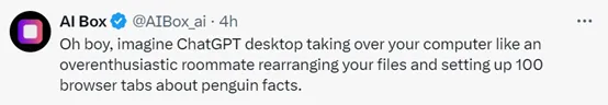 有人认为,如果ChatGPT 从提供建议转变为接管你的桌面。那么他接下来就会帮你订购披萨并更新Spotify播放列表!也就是说,ChatGPT+远程桌面可以在暗地里做很多你无法看到的事情。