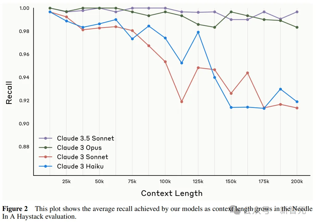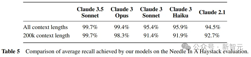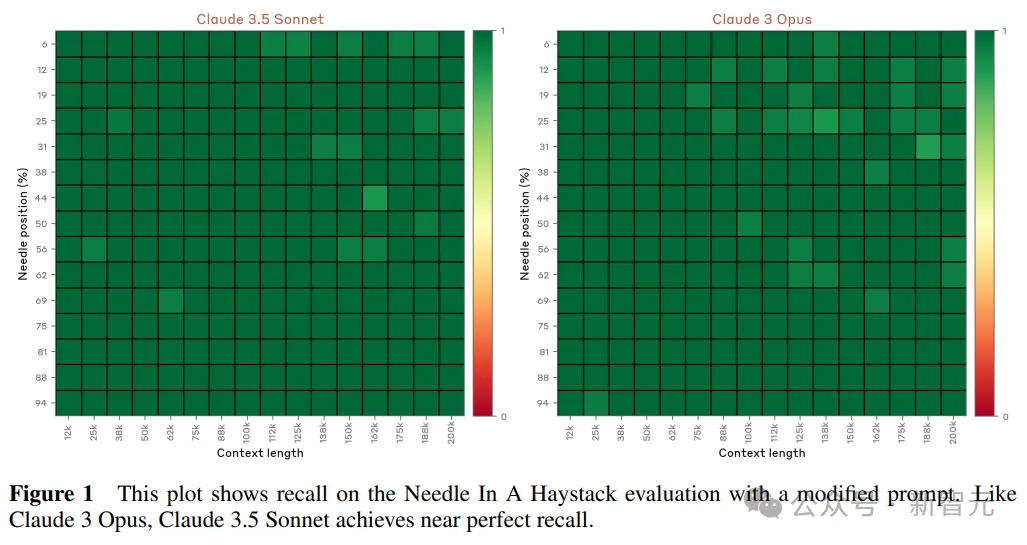 此外,从下表中能更清晰地看到,Claude 3.5 Sonnet在所有文本长度和200K长上下文之间,召回率居然没有出现明显滑落,这是包括Opus在内的所有前代模型的突破。