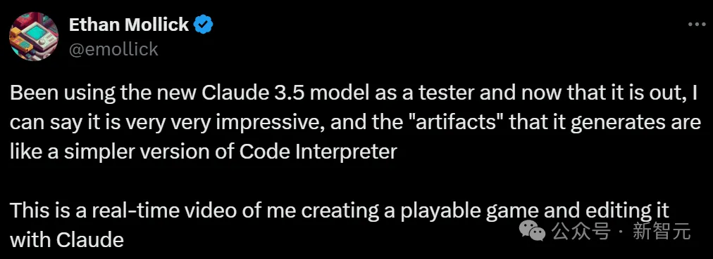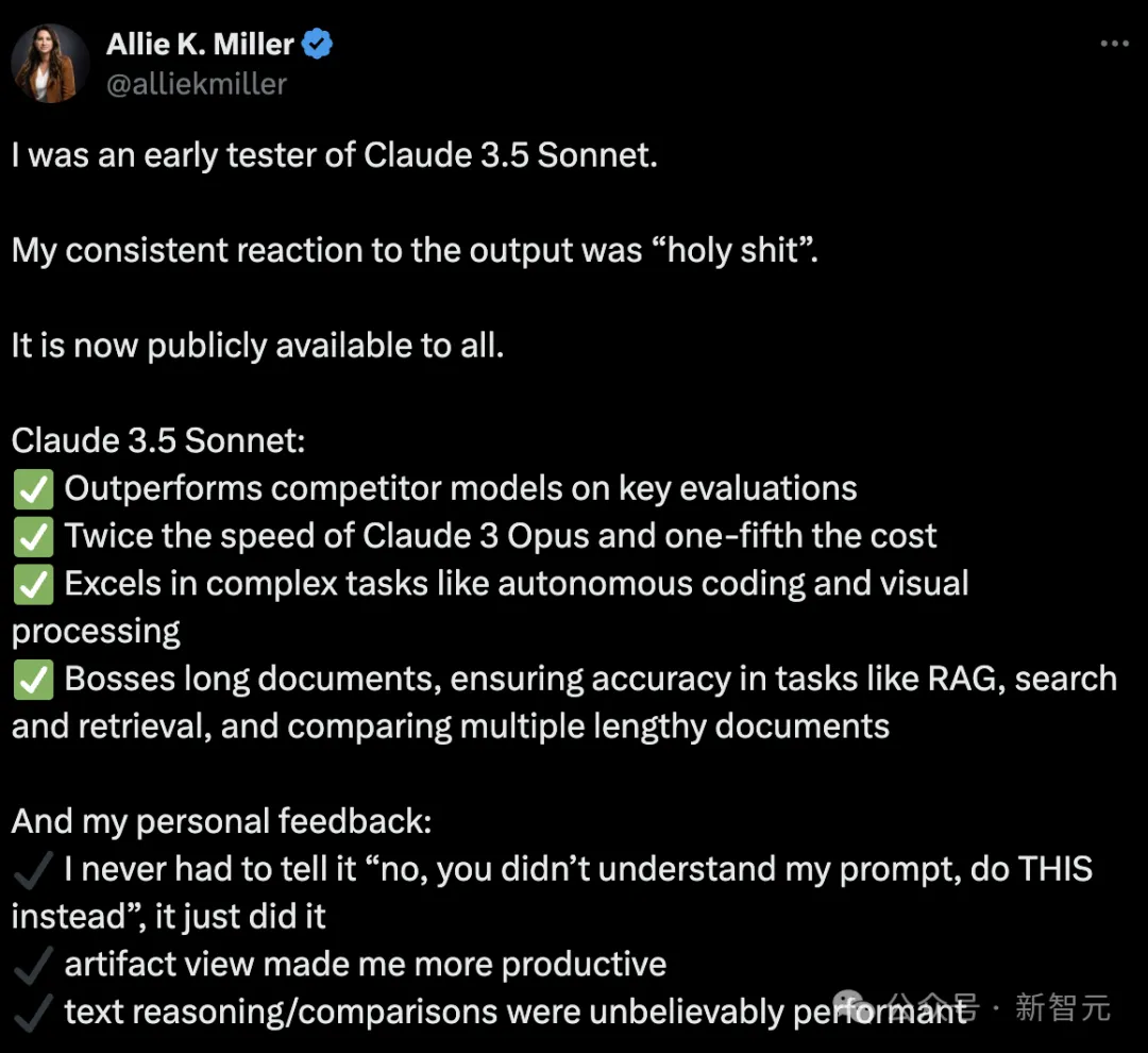 我是Claude 3.5 Sonnet模型的早期测试者,我对输出的一致反应是「超神」,模型现在已向所有人开放。