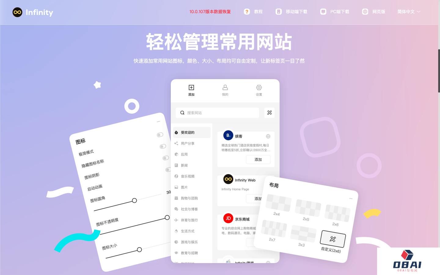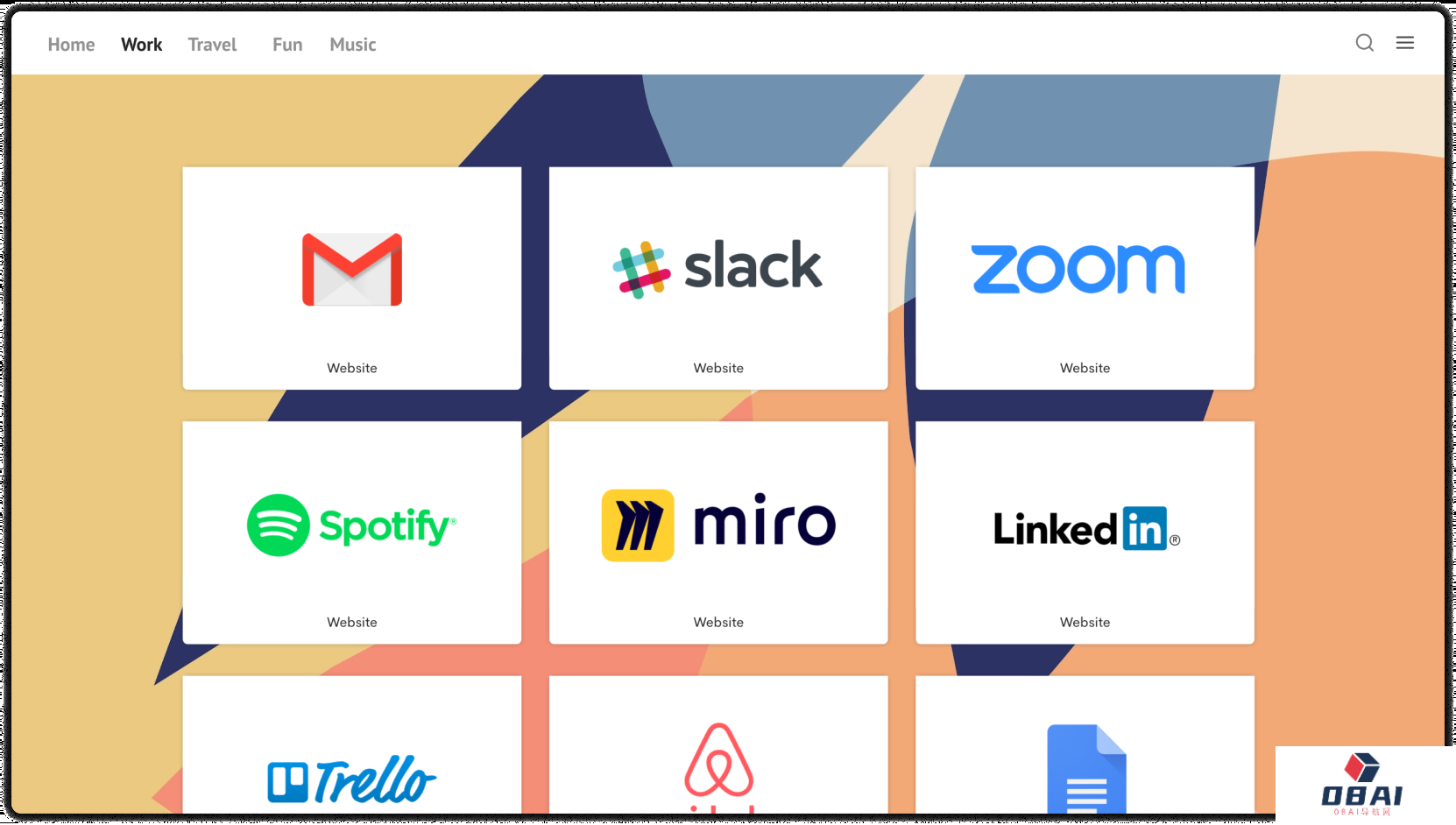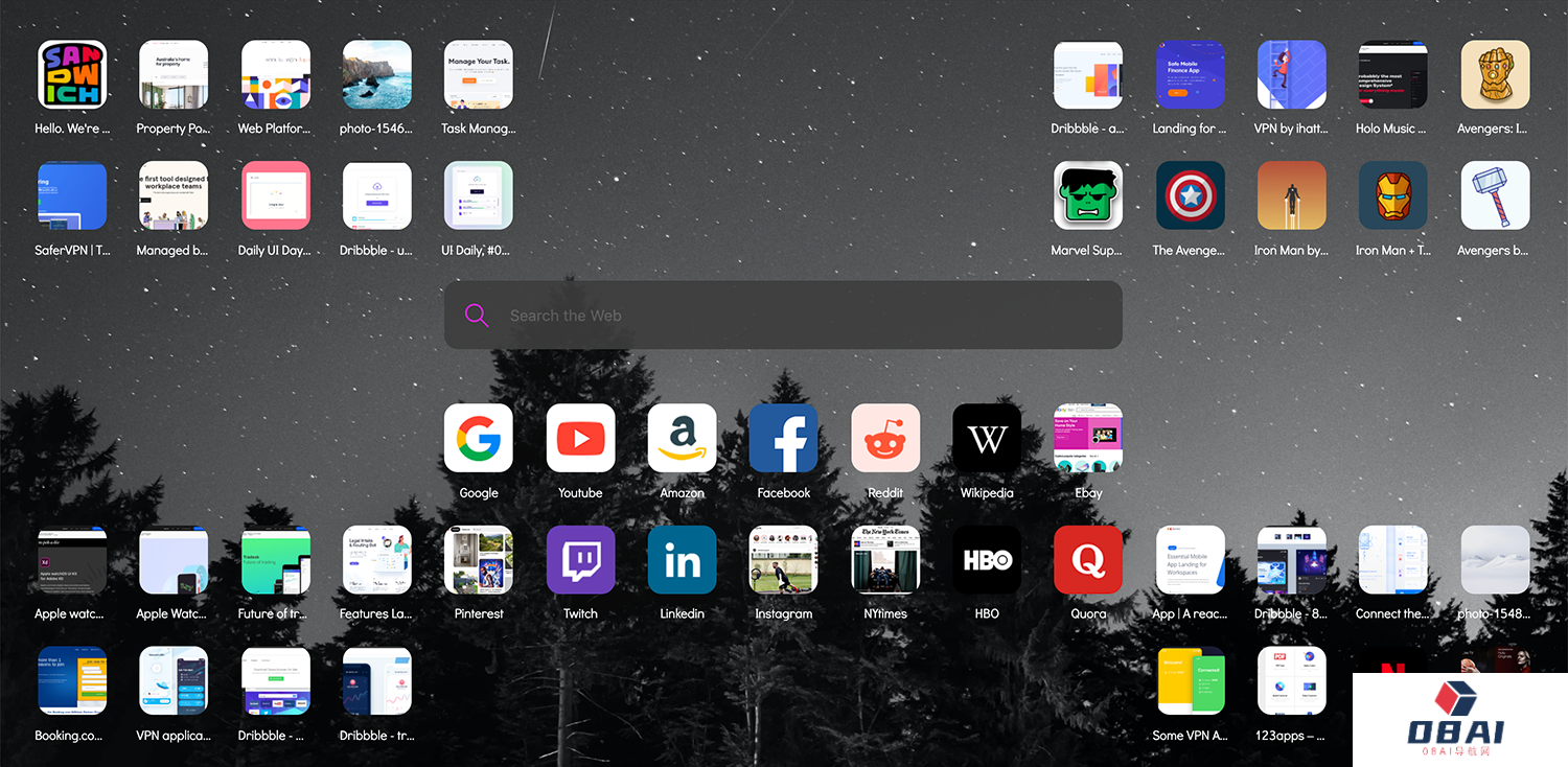 丰富的、可自定义的网站图标库;快速可调用的常驻 Dock 栏;