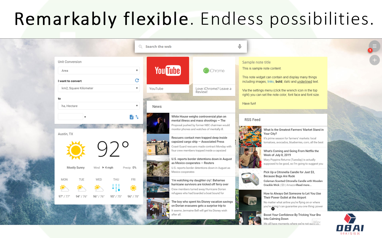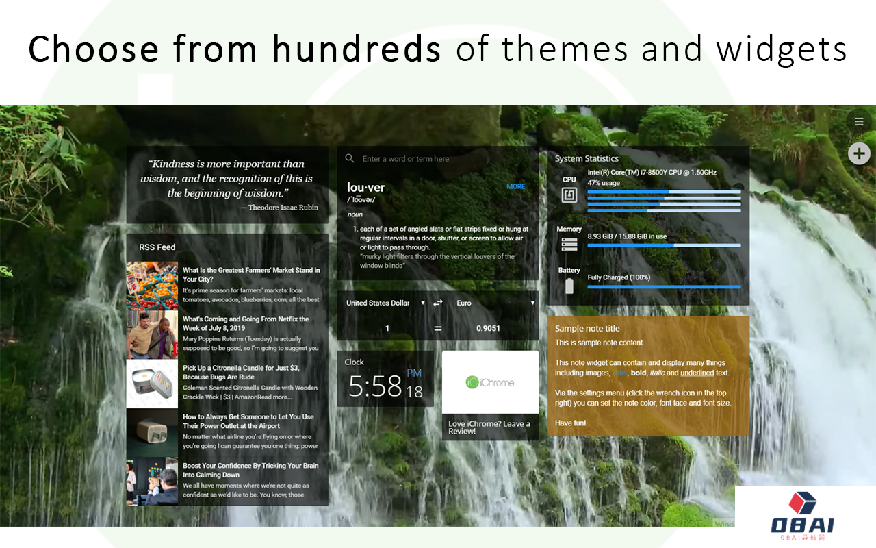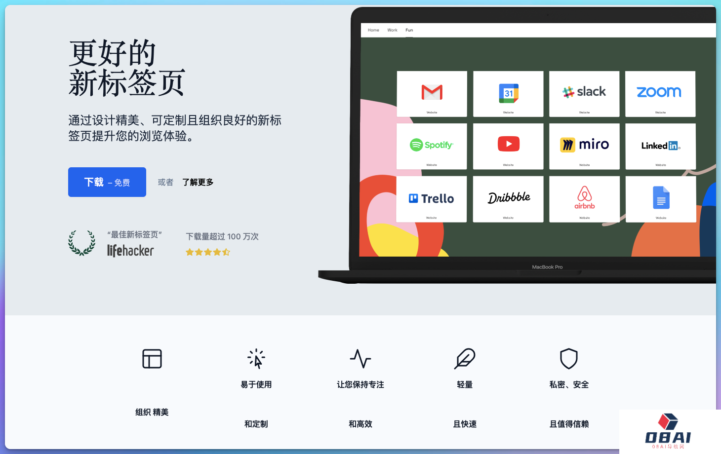 背景:数百种背景图像,让用户的新标签页看起来更加美观。