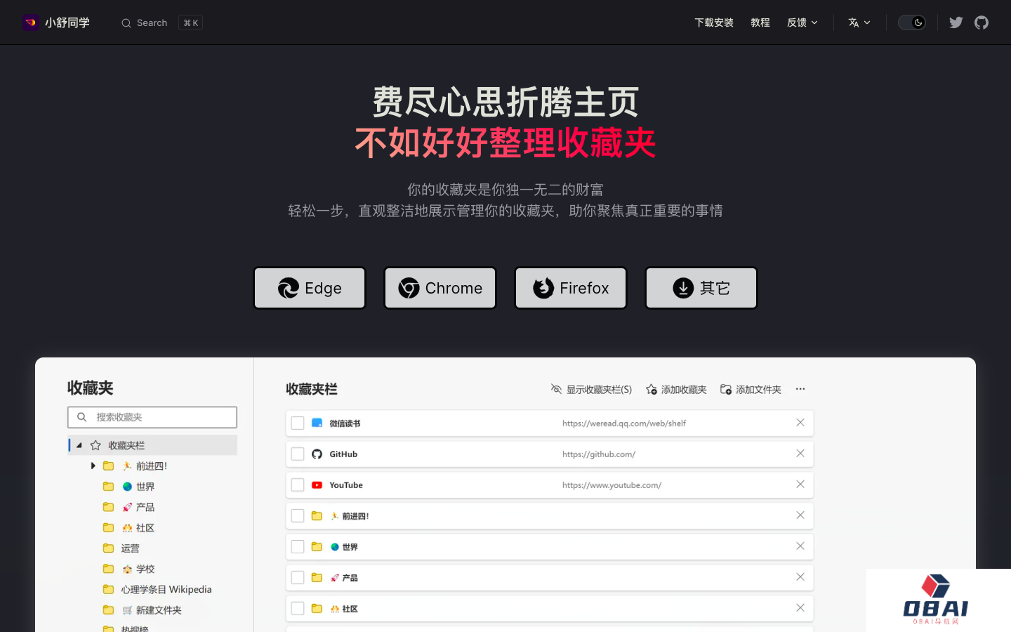 如果你需要高效管理书签,小舒同学提供书签收藏展示优化,uTab则允许创建无限书签文件夹。