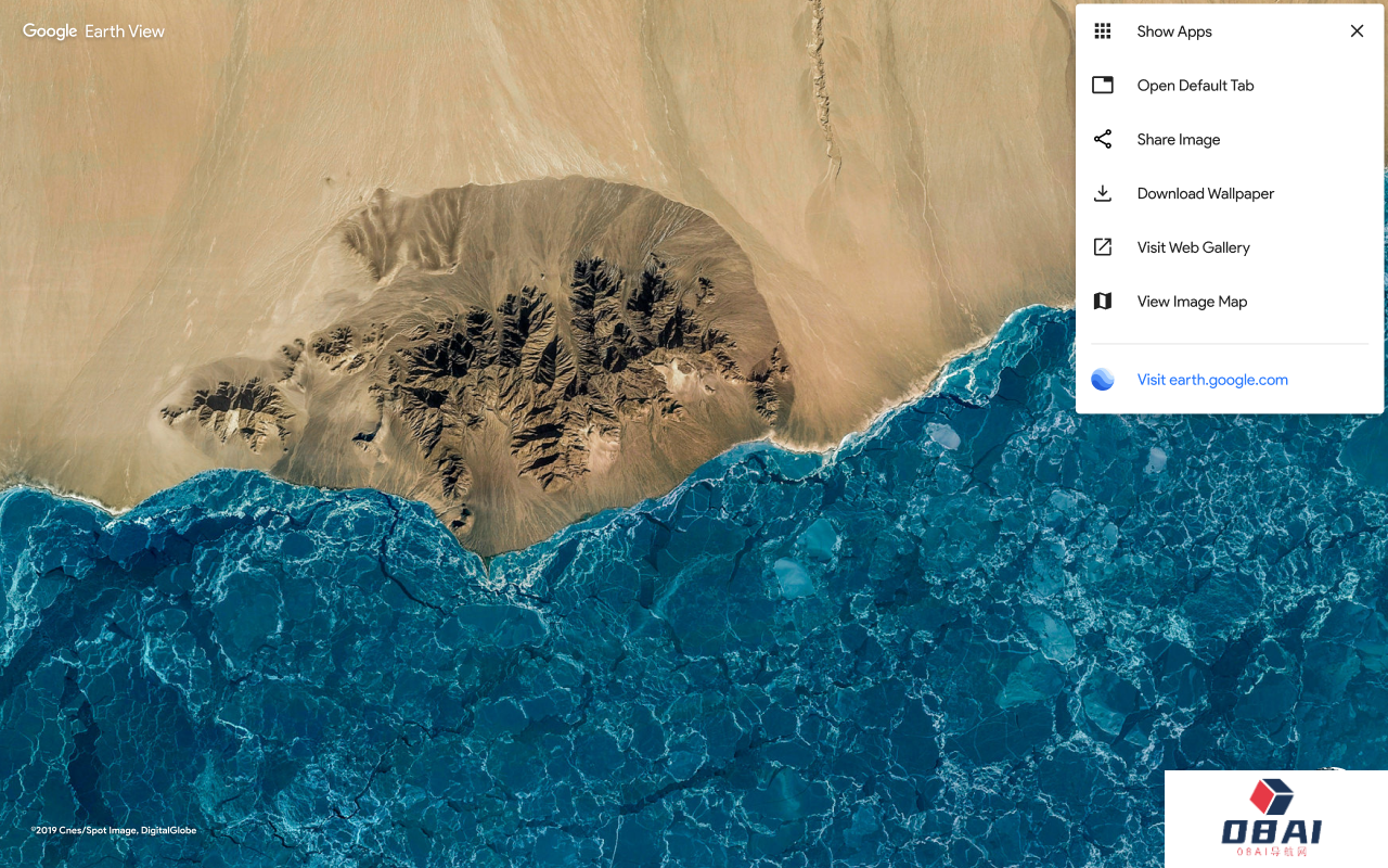 提供一个基础的Earth View网络版窗口,快速访问历史记录、打开默认标签页、分享图片、下载壁纸、访问完整的网络图库或查看图像地图;