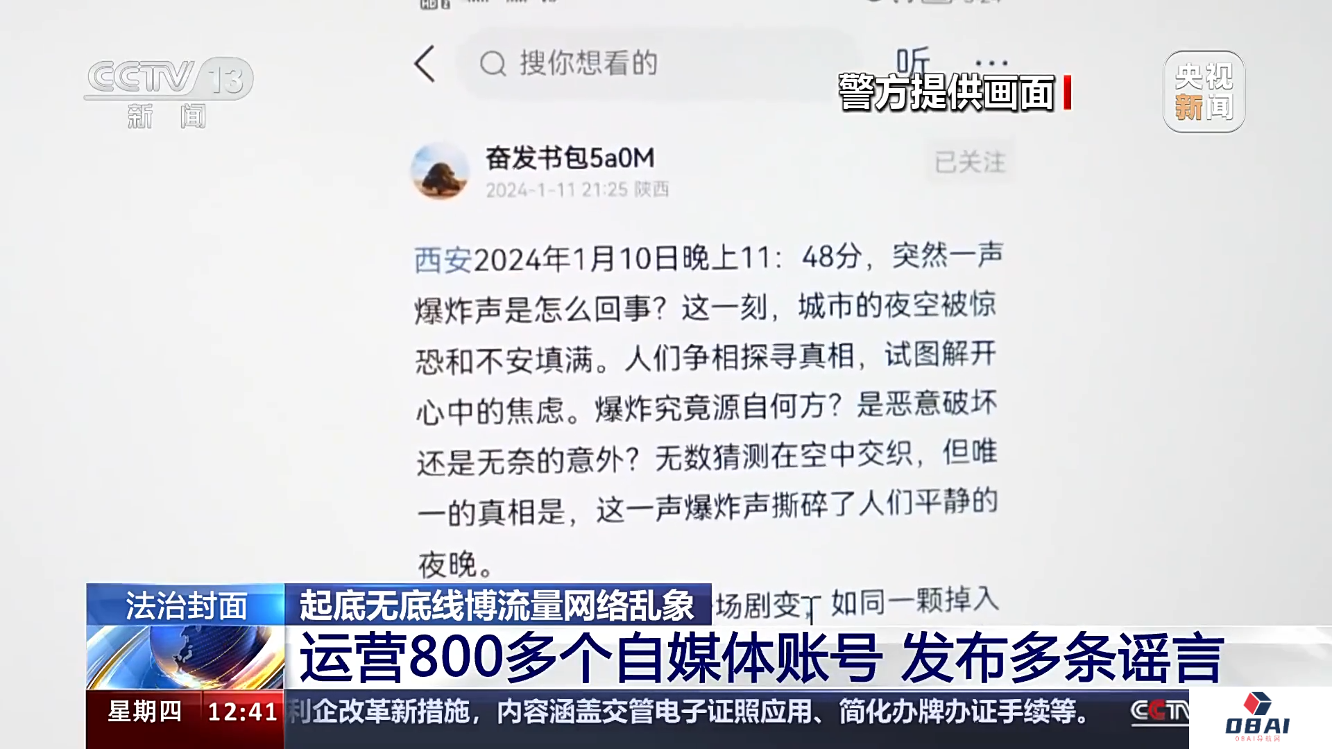 今年1月,某平台突然出现一条关于“1月10日西安爆炸”的消息,文字下方还配有蘑菇云造型的爆炸图片。消息一经发布,很快在网上发酵。