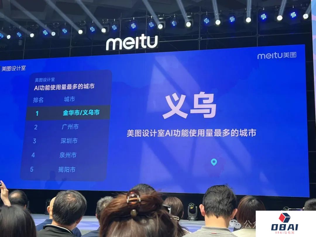比如在电商领域,让人意想不到的是,美图设计室AI功能使用量最多的城市不是大家所熟知的北上广深杭,而是在义乌。