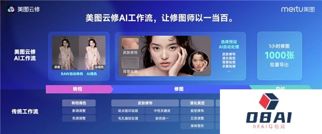 此次发布的美图云修V2重点解决专业修图关键痛点调色,推出AI批量调色功能,助力修图师大幅提效。