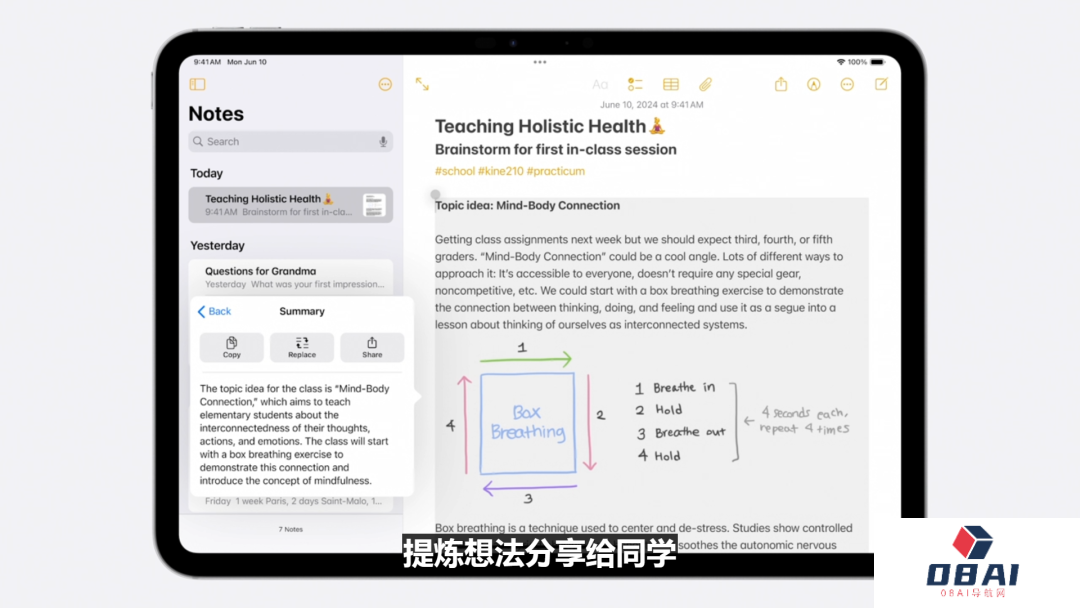 在笔记里直接圈住一块,把草图变成插图,或者在空白处生成一张插图。而这些你都不用额外去写Prompt,全部都会根据当前的页面,自动把信息联想过来。