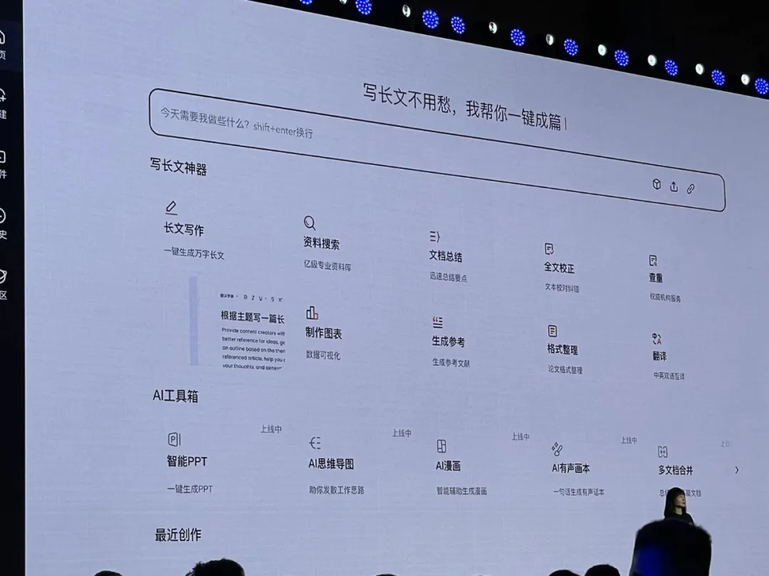 根据百度方面的说法,这是全球范围内首款针对研报、论文、学术报告等领域打造的超长篇幅的内容创作工具。
