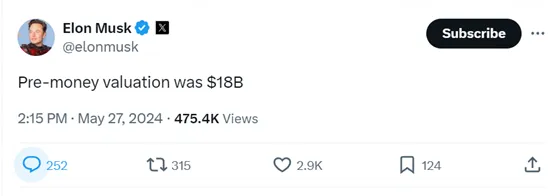 对于本次融资,马斯克表示,xAI在投资前估值是180亿美元,也就是说在很短的时间内增长了60亿美元。其估值也超过了Anthropic的180亿美元和Scale AI的130亿美元,仅次于OpenAI的860亿美元估值。