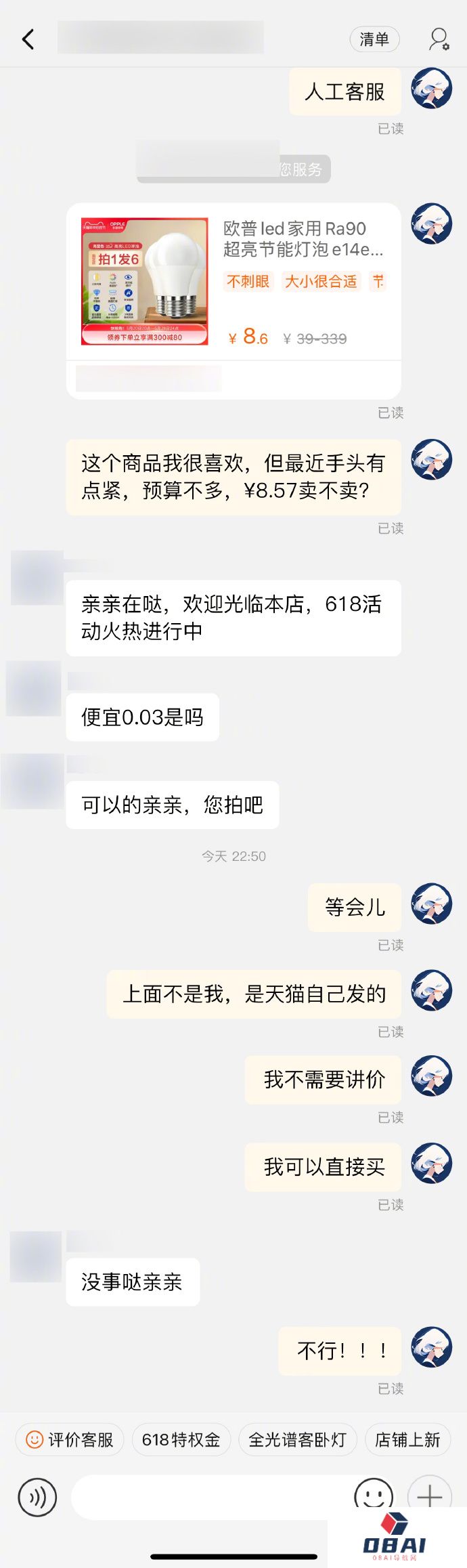 根据实机体验看,该功能会直接调用用户的淘宝账号与跟商家的客服直接讲价,并且不会特殊标记AI机器人,因此会出现很诡异的「人机同屏」的场面。