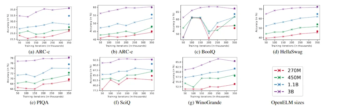 例如,11亿参数的OpenELM,比12亿参数的OLMo模型的准确率高出2.36%,而使用的预训练数据却只有OLMo的一半。