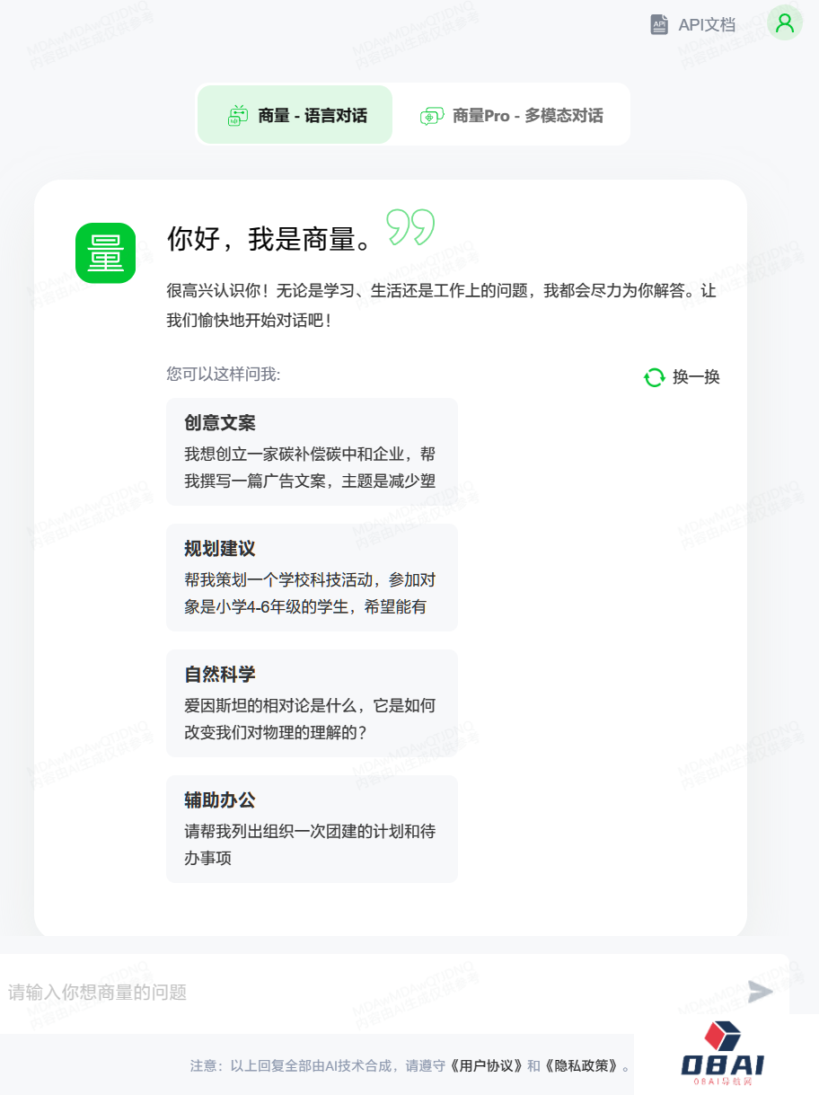 商量SenseChat是由商汤科技研发的一款基于自然语言处理技术的人工智能大语言模型