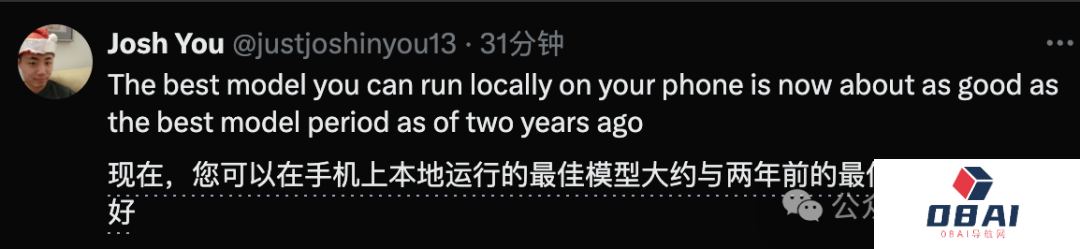 这意味着,现在手机上能本地运行的最佳开源模型,已经做到ChatGPT(GPT-3.5)的水平。