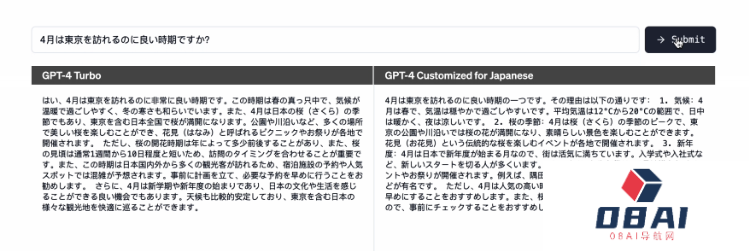 除了在日本的最大城市开设首个海外办事处,OpenAI 还将发布针对日语进行优化的 GPT-4 定制模型。与 GPT-4 Turbo 相比,它在日文文本方面的性能有所提高,运行速度最多可提高三倍。与此同时,该模型提高了翻译和总结日语文本的性能和成本效益。