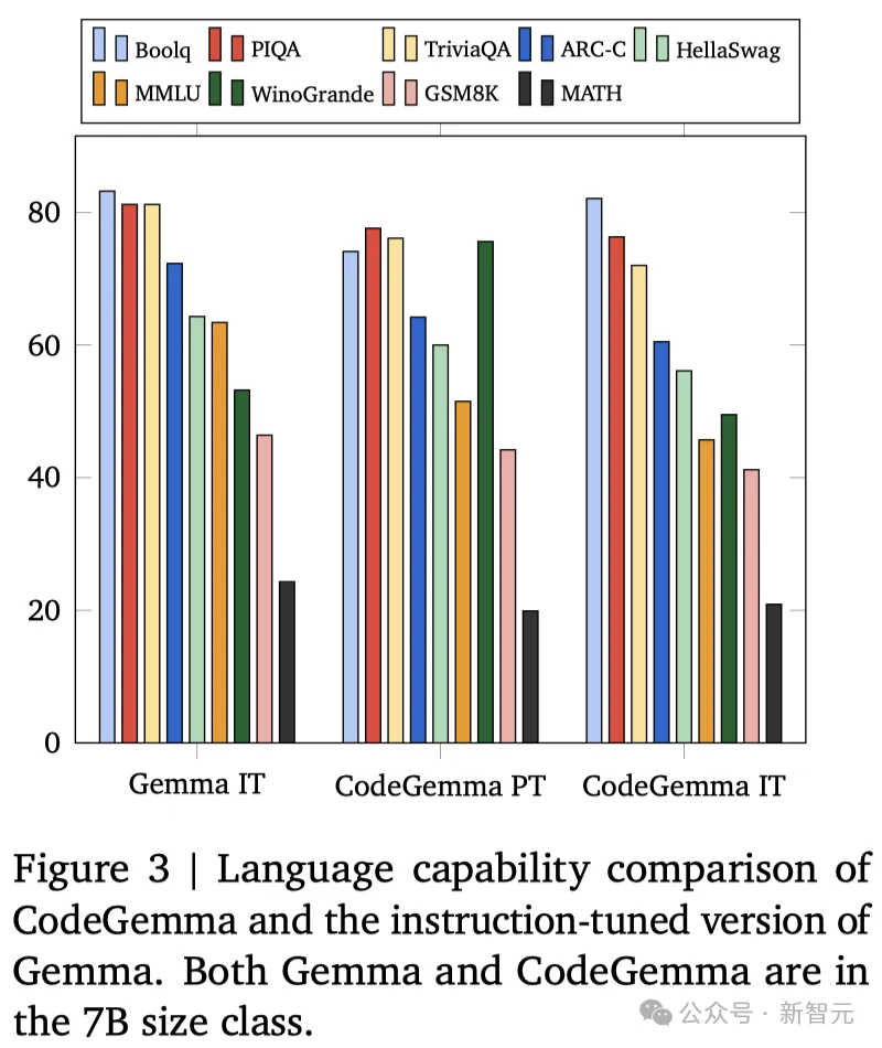 与Gemma基础模型相比,CodeGemma在编程领域的任务上表现明显更强。