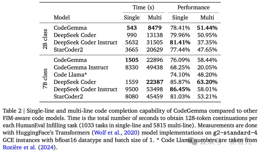 如表2所示,CodeGemma 2B在代码补全场景下展现出了卓越的性能,尤其是在低延迟的表现上。