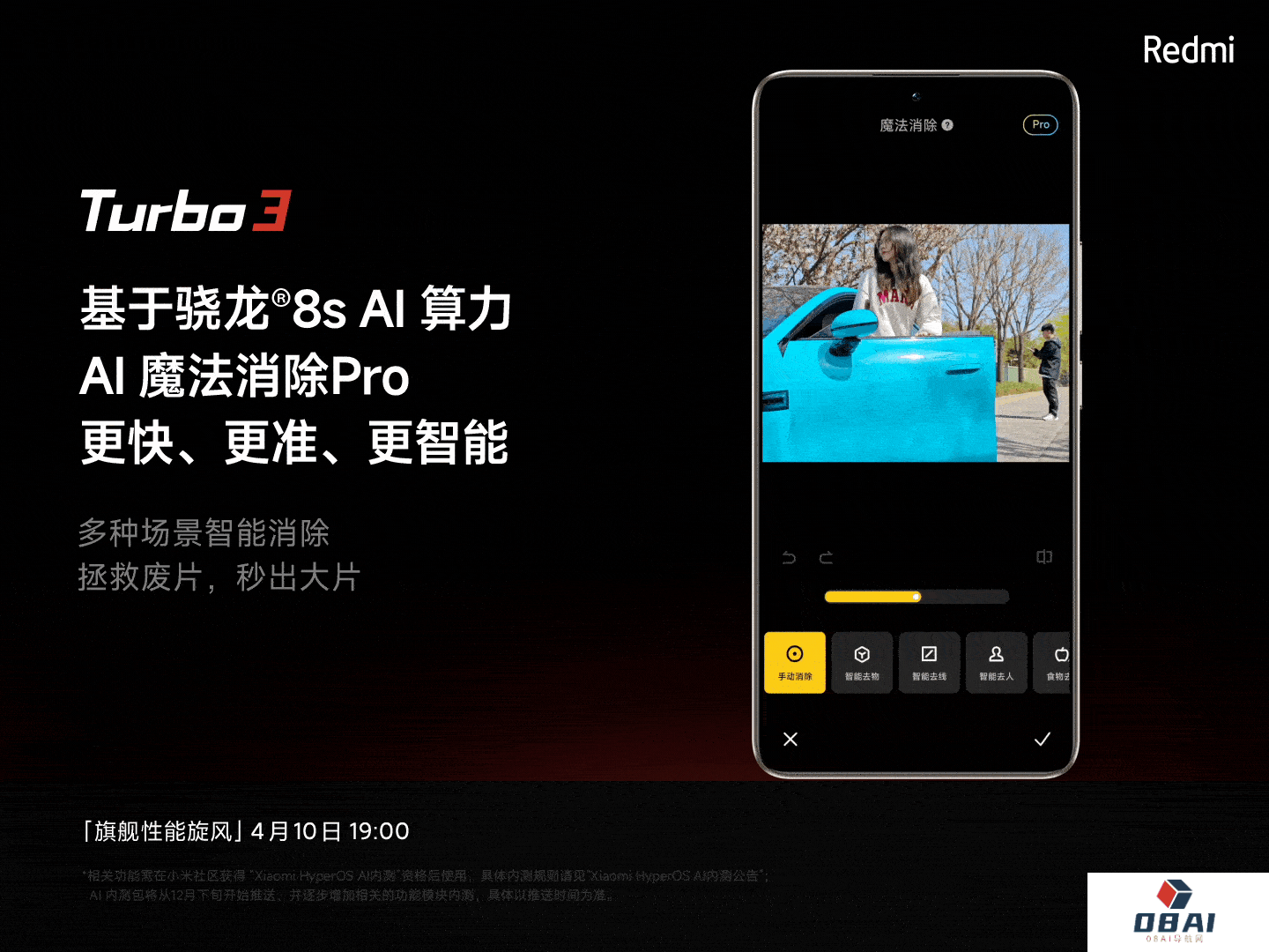 小米集团即将发布新一代的 Redmi Turbo 3 手机,该机型将于 4 月 10 日 19 点发布,搭载高通骁龙 8s Gen 3 芯片。今日,小米官方着重对于这款新机的 AI 功能进行预热,以彰显「AI手机」的应用实力。
