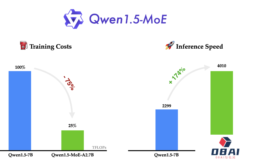 当地时间3月29日,阿里巴巴在推特(X)平台,首次宣布开源MoE(混合专家)技术大模型Qwen1.5-MoE-A2.7B,这个模型以现有的Qwen-1.8B模型为基础。Qwen1.5-MoE-A2.7B激活参数为2.7亿,但在一系列基准评估中可以达到7B模型的性能。此外,与7B模型相比,它在训练成本和推理速度上具有显著优势。据官方评测显示,Qwen1.5-MoE-A2.7B在与最佳的7B模型相比取得了非常接近的性能。
