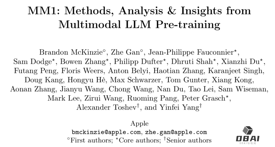 今日,在一篇由多位作者署名的论文《MM1: Methods, Analysis & Insights from Multimodal LLM Pre-training》中,苹果正式公布自家的多模态大模型研究成果 —— 这是一个具有高达 30B 参数的多模态 LLM 系列。