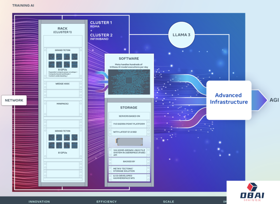 当地时间3月11日,Meta昨晚宣布推出两个24576-GPU数据中心规模集群,将其称作“Meta对AI未来的重大投资”,并公布其GenAI基础设施细节,涉及硬件、网络、存储、设计、性能和软件的详细信息。Meta使用这种集群设计进行Llama 3训练。到2024年底,Meta的目标是继续扩大基础设施建设,包括35万块英伟达H100 GPU,作为其产品组合的一部分,将具有相当于近60万块H100的计算能力。
