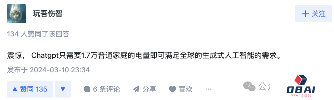 震惊, 只需要1.7万普通家庭的电量即可满足ChatGPT的一日用电需求。(手动狗头)