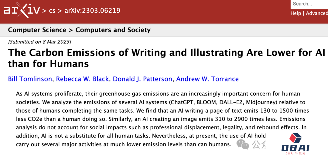 咳咳,有意思的是,上面的答主@段小草还提到了一篇论文,题为《The Carbon Emissions of Writing and lllustrating Are Lower for Al than for Humans》,讲的是AI在画画和写作上的碳排放量一个比人类少310到2900倍,一个比人类少130到1500倍。
