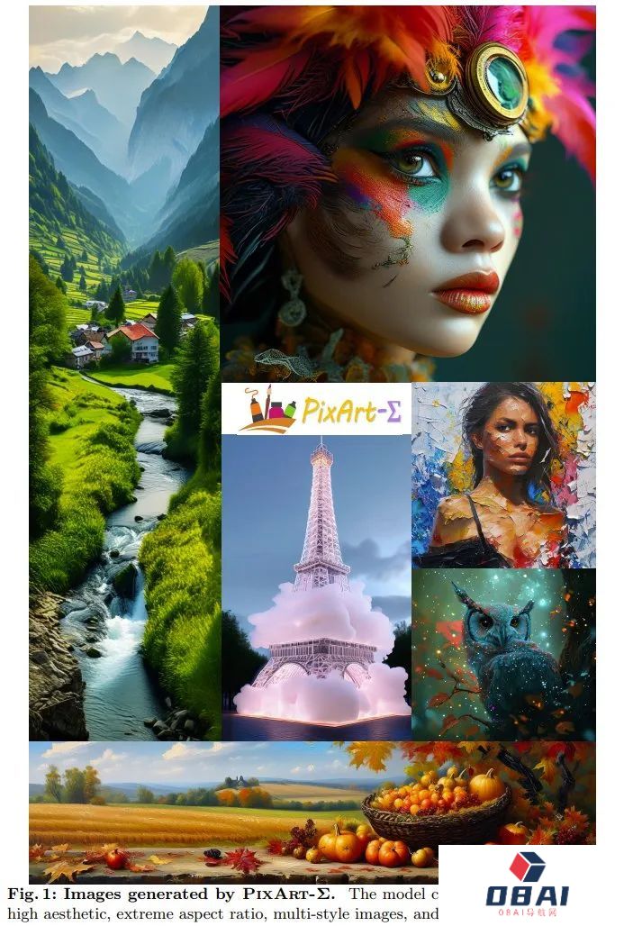 该团队使用 PixArt-α 的预训练基础模型,通过整合高级元素以促进其持续提升,最终得到了一个更加强大的模型 PixArt-Σ。图 1 展示了一些生成结果示例。