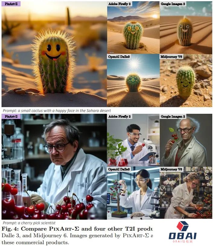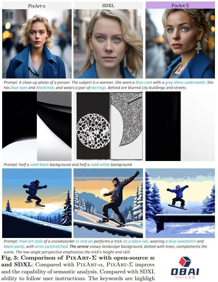 PixArt-Σ 不仅优于开源模型,而且与当前的闭源产品相比也颇具竞争力,如图 4 所示。