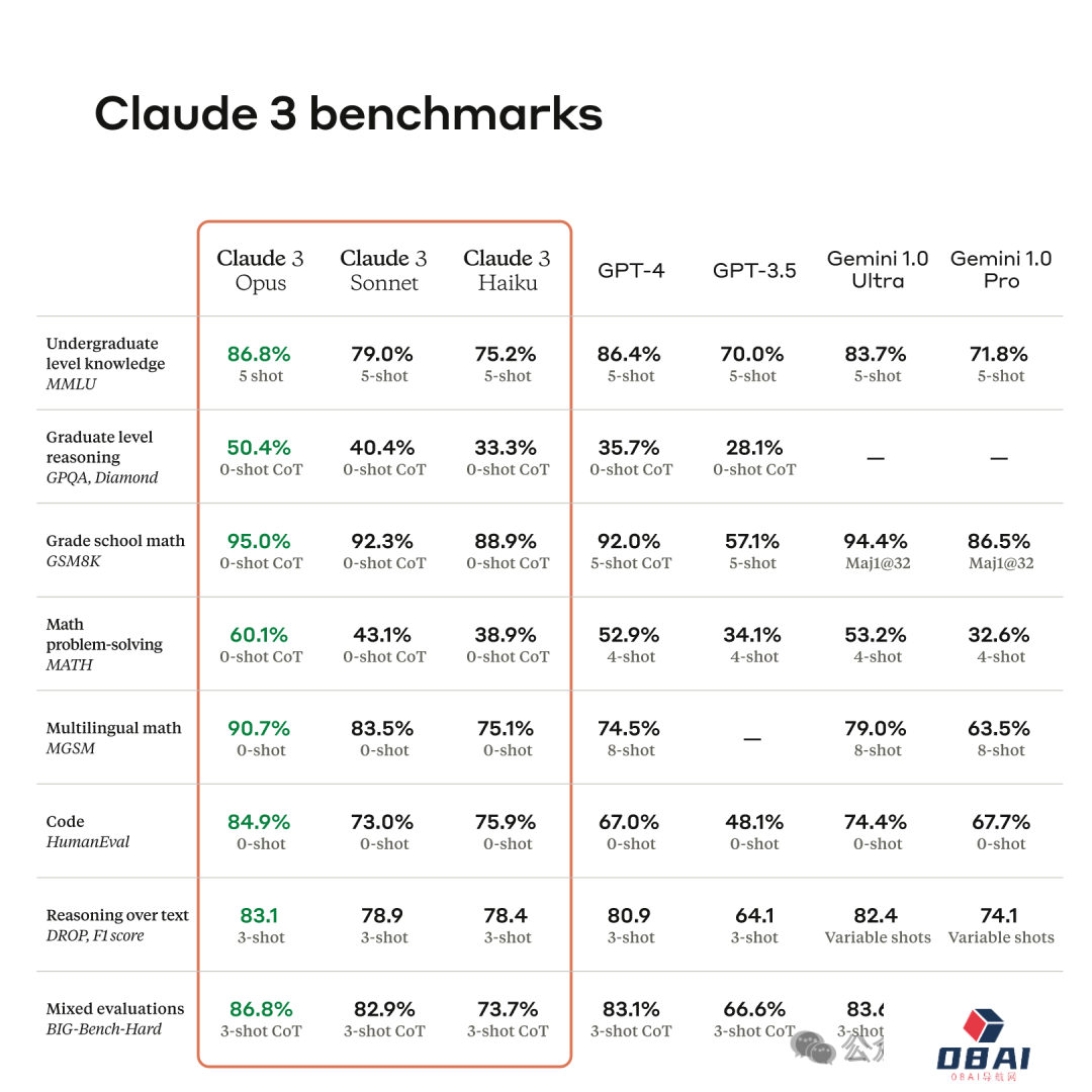 除了Claude 3.我们再看看其他表现亮眼的选手。
