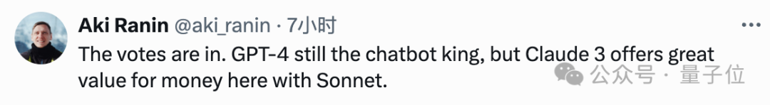至于中等性能的Claude 3 Sonnet,则排名第6.位于GPT-4这两个版本之间: