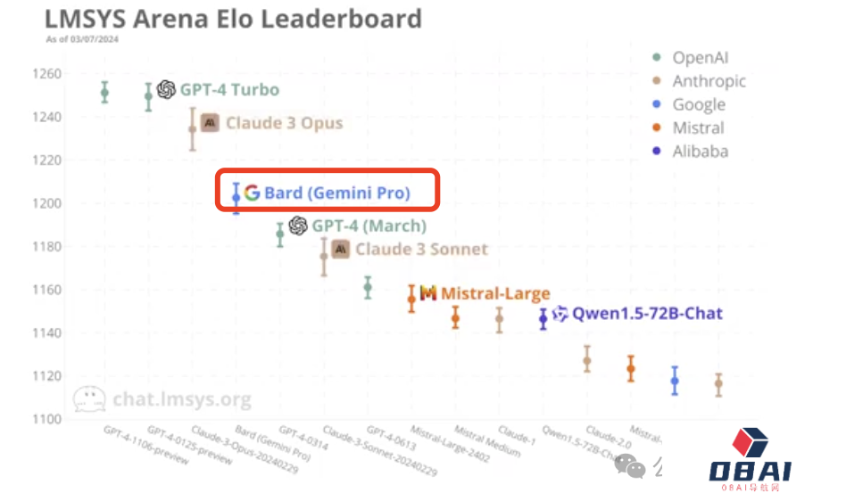 首先要提的就是基于Gemini Pro的Bard,排名第四,仅次于GPT-4Turbo和Claude 3.