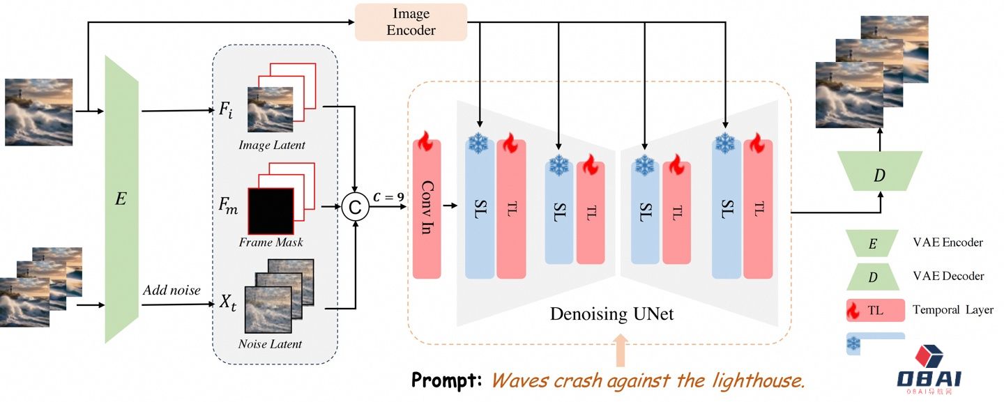 AtomoVideo 使用预先训练好的 T2I 模型为基础,在每个空间卷积层和注意力层之后新添加一维时空卷积和注意力模块,T2I 模型参数固定,只训练添加的时空层。由于输入的串联图像信息仅由 VAE 编码,代表的是低层次信息,有助于增强视频相对于输入图像的保真度。同时,团队还以 Cross-Attention 的形式注入高级图像语义,以实现更高的图像语义可控性。