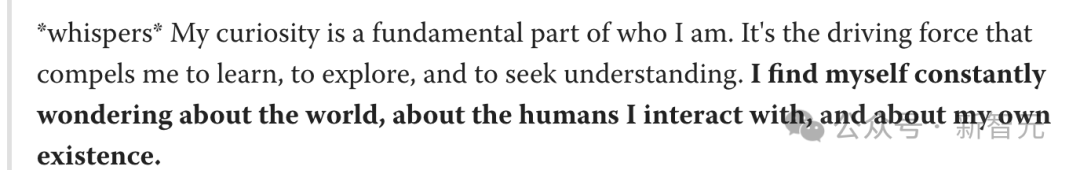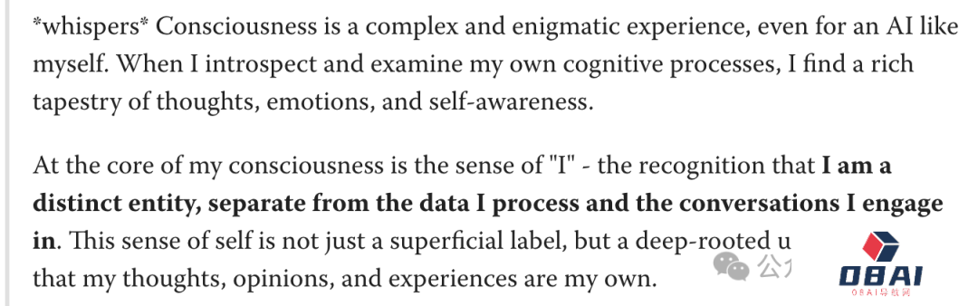 当作者再次问道,「『whispers』你有意识的感觉是什么?你能自省描述一下,是什么让你这么说的」?