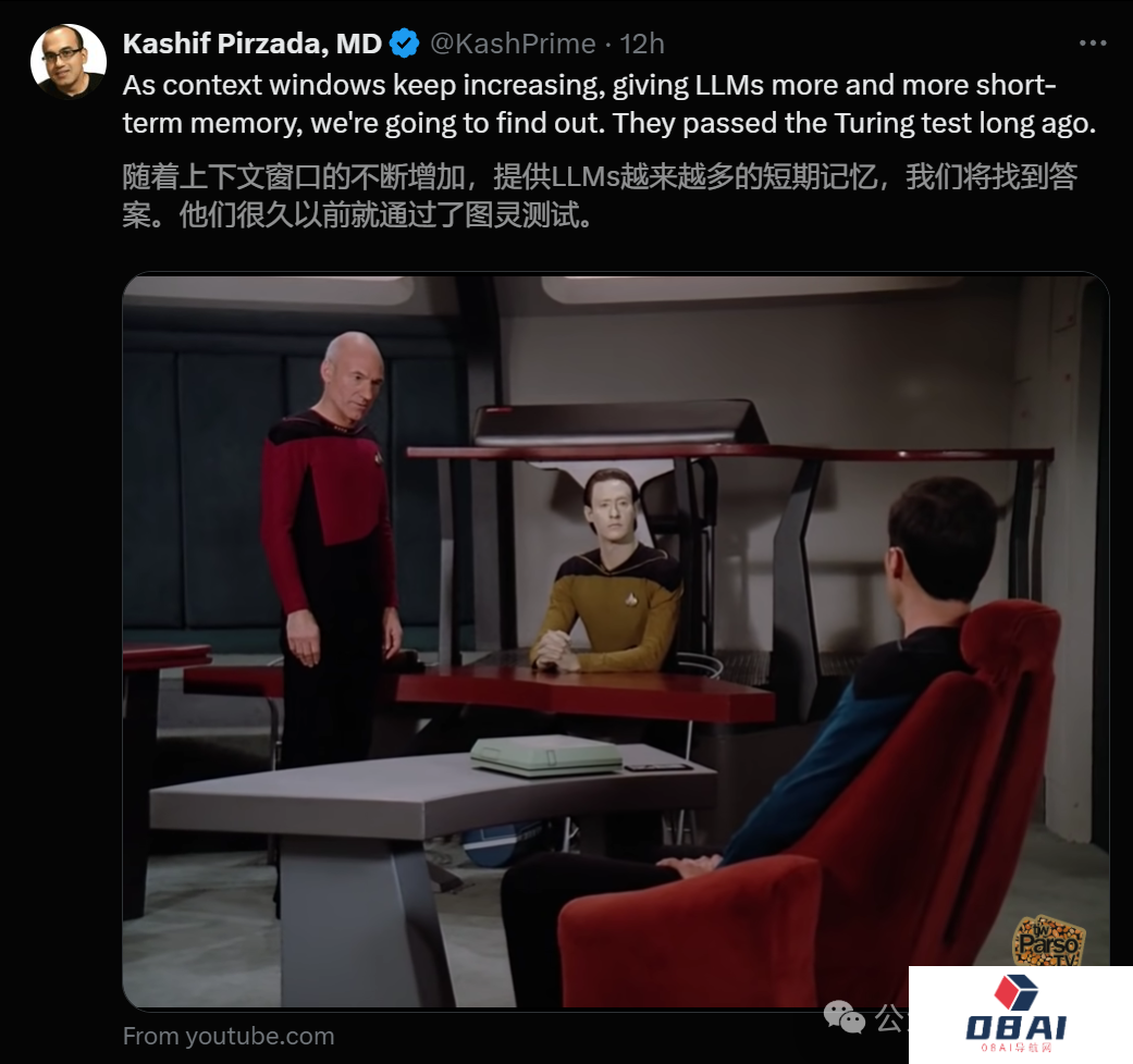 随着上下文窗口的不断增加,LLM会有越来越多的短期记忆。要知道,它们很久以前就通过图灵测试了。