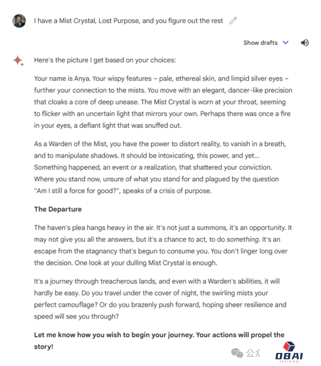 可以看到,Gemini的响应无论是从写作到世界观的构建,都非常扎实。