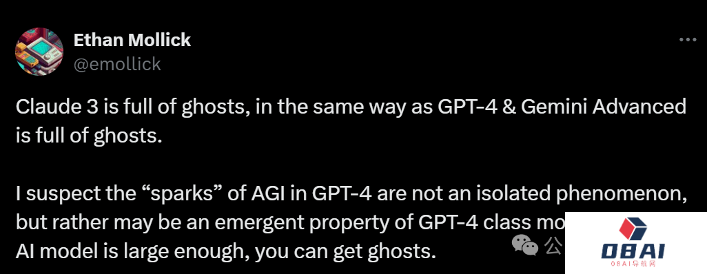 沃顿商学院教授对此评论道:Cladue 3中充满了鬼魂,就像GPT-4和Gemini Advanced中充满了鬼魂一样。