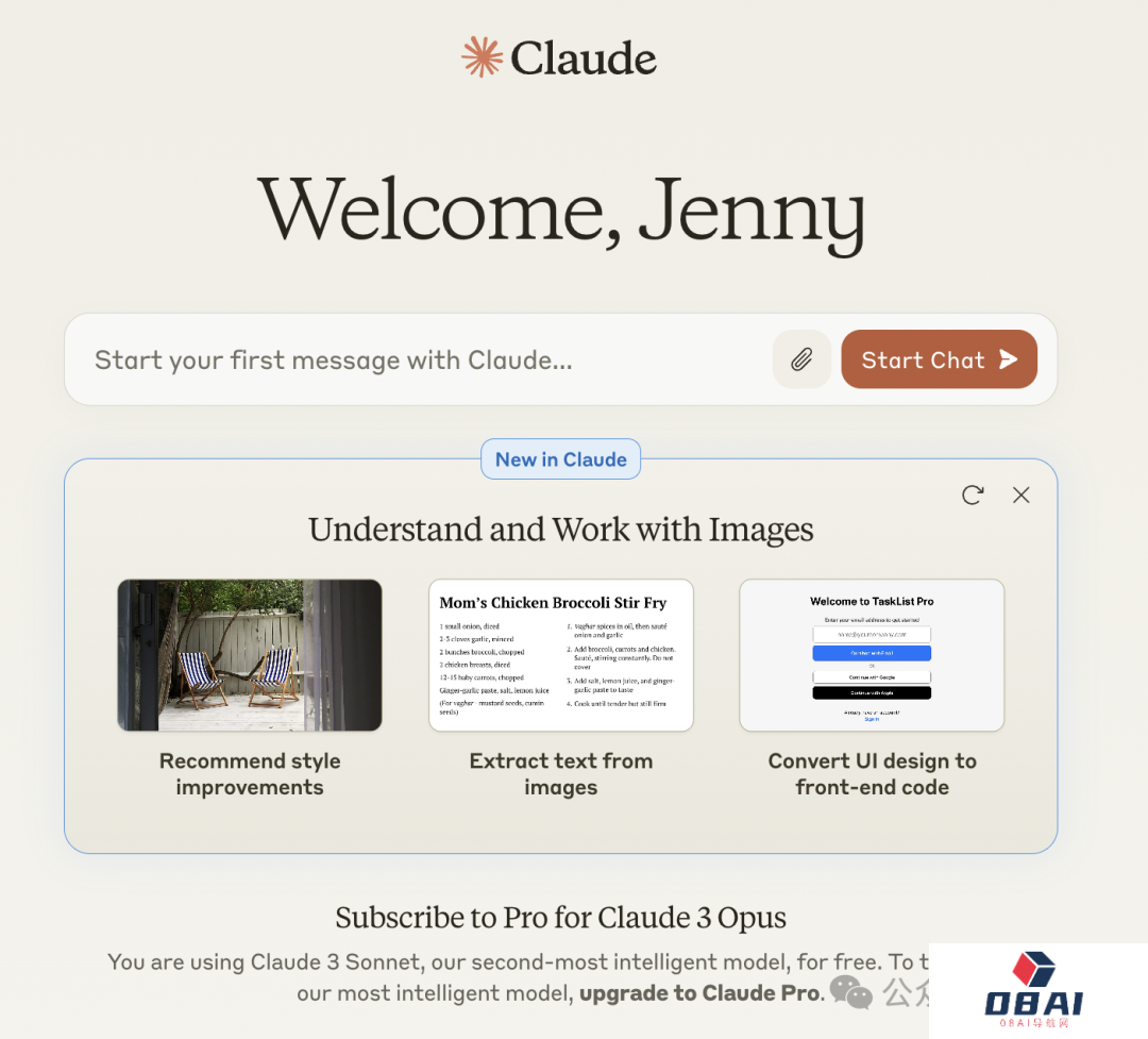 底下写着:你正在使用他们第二大智能模型Claude 3 Sonnet。