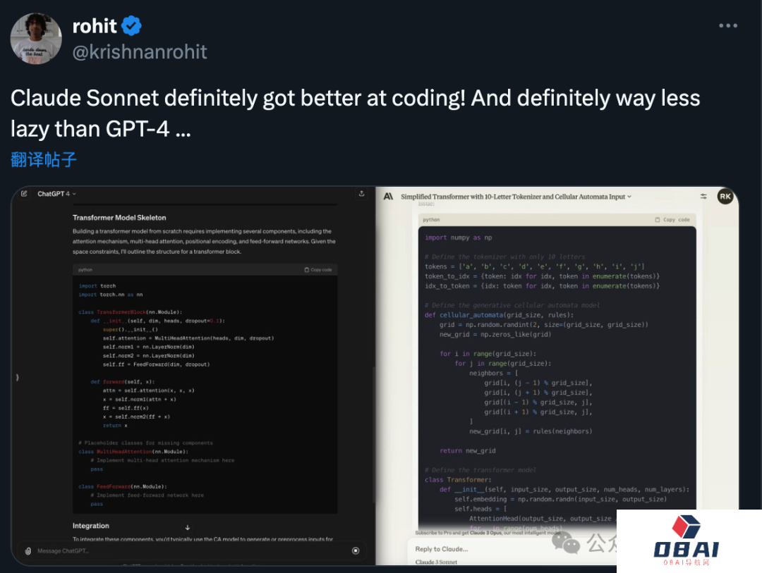 在编程任务上,谁写的代码好先不说,Claude 3至少不会像GPT-4一样偷懒。