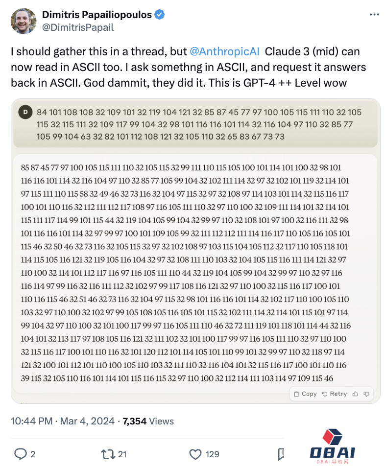 还有网友发现Sonnet现在也可以读取 ASCII 码了,直呼:这是GPT-4 ++的水平了。