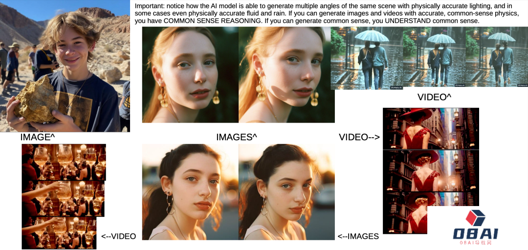 重要:注意AI模型能够生成同一场景的多个角度,具有物理上准确的光线,甚至在某些情况下还能生成物理上准确的流体和雨水。如果你能生成具有准确、常识性物理的图像和视频,你就拥有了常识推理能力。如果你能生成常识,你就理解了常识。