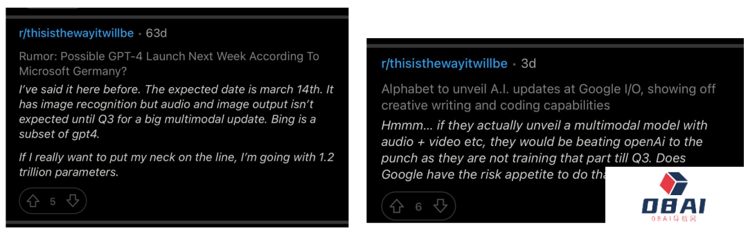 来自Longjumping-Sky-1971的两篇帖子。我之所以包含这些,是因为他提前几周准确预测了GPT-4的发布日期(没有人事先公开发布这些信息,这意味着他有一个内部信息源)。他的帖子现在更有可信度——他声称图像和音频生成将在2023年第三季度进行训练。如果视频生成训练是同时进行的或紧随其后,这与Siqi Chen声称GPT-5在2023年12月完成训练的说法相吻合。
