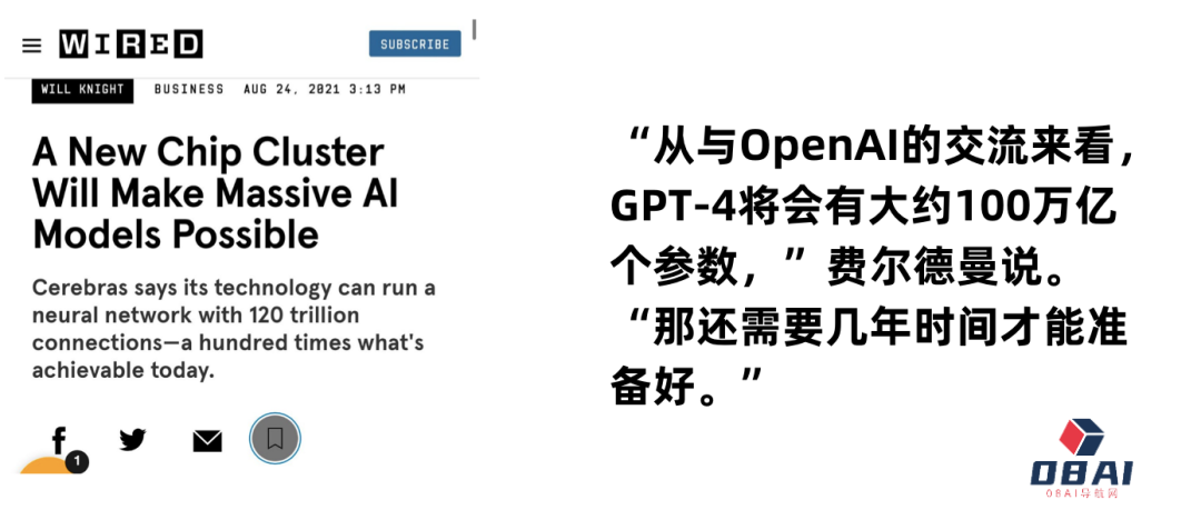 OpenAI正在开发一个拥有100万亿参数模型的首次提及是在2021年夏天,这一信息是在一次《连线》杂志的采访中由Cerebras公司的首席执行官安德鲁·费尔德曼随口提到的,而Sam Altman是该公司的主要投资者之一。